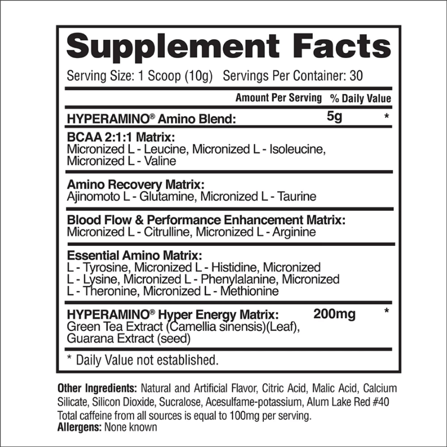 HYPER AMINO is exactly what the name says it is – Amino Acids that drive insane energy. Gaspari Nutrition has taken powerful Amino Acids and then tweaked them with cutting-edge energy technology so that it blasts you faster and lasts longer.