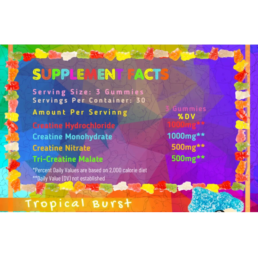 Welcome to the product of Koka Labz’s “CreaBears.” These unique gummy bear-shaped gummies introduce a delightful innovation in creatine supplementation. CreaBears provides a tasty way to deliver four different forms of creatine to your body, offering potent support for your training and sports goals.