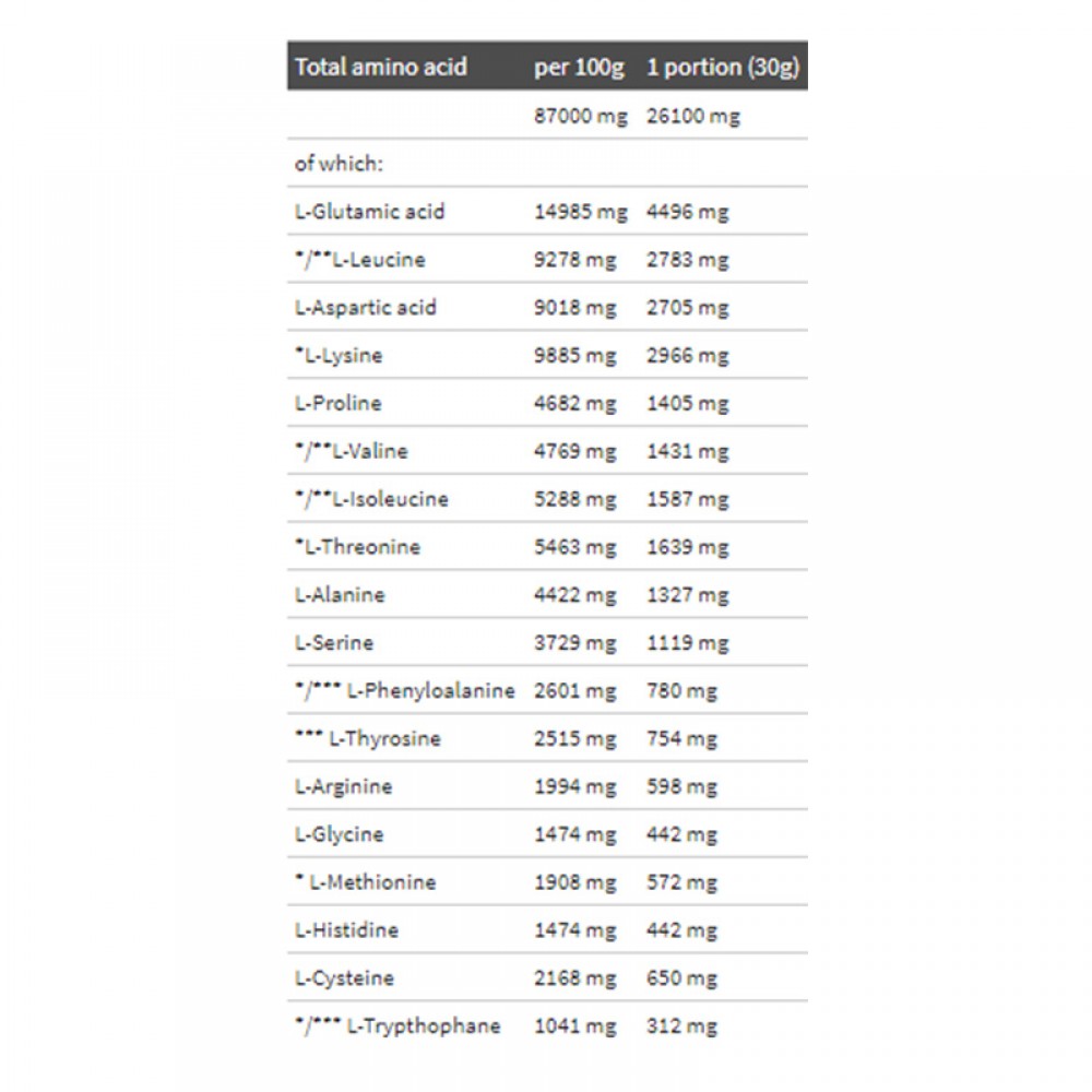 OLIMP Pure Whey Isolate 95 is the highest quality, lactose-free, pure whey protein isolate (WPI), enriched with a complex of vitamins and minerals, ensuring the proper course of metabolic processes with increased physical activity and increased protein intake. Whey protein isolates have the highest nutritional value and anabolic activity among all dietary proteins. The proteins obtained in the CFM microfiltration process, not denatured, retain the full structure and activity of functional whey proteins – beta-lactoglobulin, alpha-lactalbumin, immunoglobulin, plasma albumin, lactoferrin, lactotransferrin, ceruloplasmin, phosphoglycoprotein, protease, and peptones. High nutritional value and anabolic activity mean that isolated whey proteins have been recognized as the most valuable source of dietary protein for competitive athletes and physically active people. The high nutritional value is due to the highest possible bioavailability, conditioned by ideal solubility and favorable osmotic pressure of non-denatured proteins as well as optimal proportions of Exo- and endogenous amino acids with an exceptionally high proportion of branched-chain amino acids (BCAAs) and glutamine. The high anabolic activity, in addition to high nutritional value, is influenced by the metabolic characteristics of whole whey proteins and the resulting transformation of peptides and micro peptides. These substances work similarly to peptide, anabolic growth factors. They facilitate the transport of amino acids to muscle cells and stimulate anabolism. They form an antioxidant barrier. They stabilize lysosomes and inhibit the activity of catabolic lysosomal enzymes.